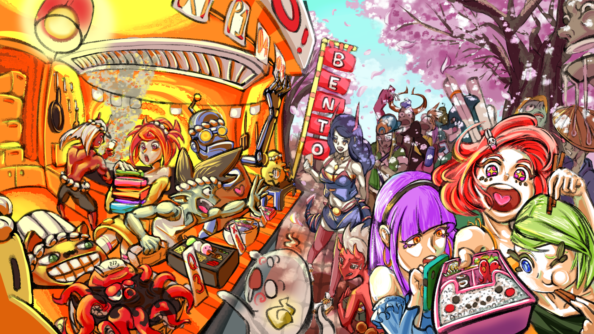 Original Illustration themed around the traditional Japanese lunchbox, Bento.